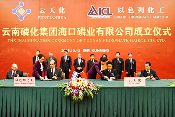 中以合資企業(yè)云南磷化集團(tuán)??诹讟I(yè)有限公司(簡(jiǎn)稱YPH)于2015年10月成立,注冊(cè)資本23億元人民幣,由中以化工以色列化工集團(tuán)、云天化集團(tuán)合資組建。